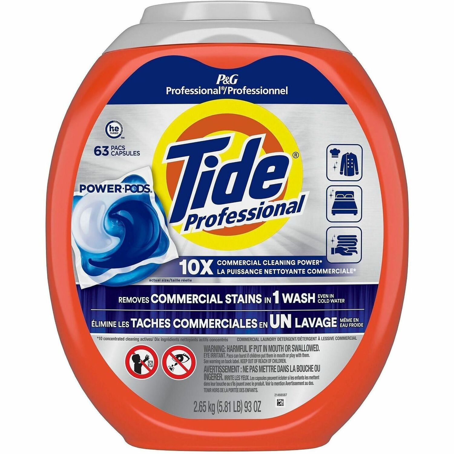 Tide Professional PODS Detergent is effective on tough stains businesses encounter every day, removing them in a single wash. Laundry detergent works across different types of businesses, including foodservice, hospitality, healthcare and more, in commercial and residential machines. 10 concentrated cleaning actives deliver a deep, commercial clean even in cold water. Formula is free of alkylphenols, alkylphenol ethoxylates, benzene, BPA, PVC, PAHs, PCBs, phthalates, triclosan and more.